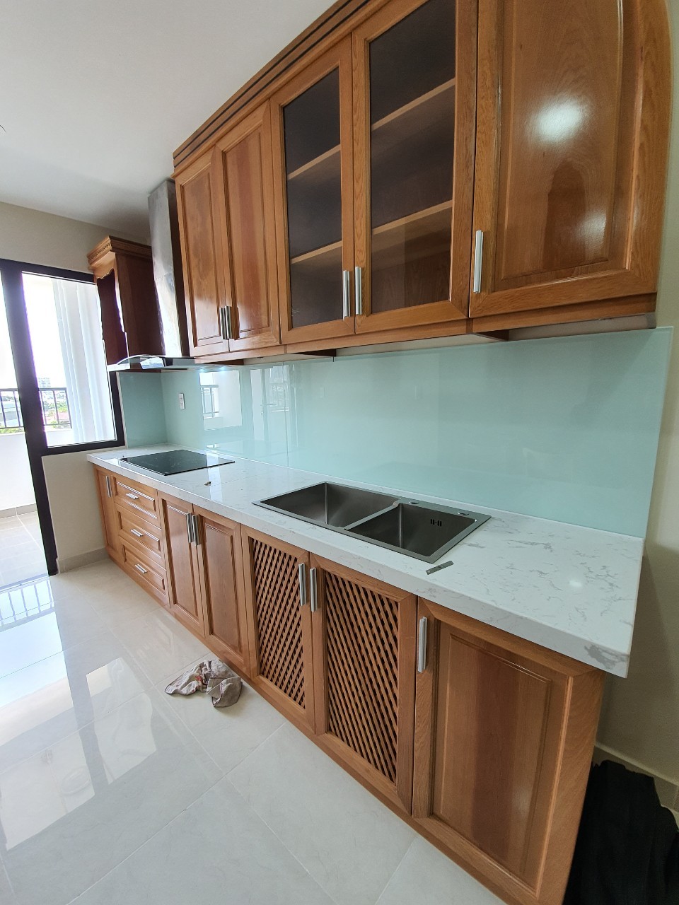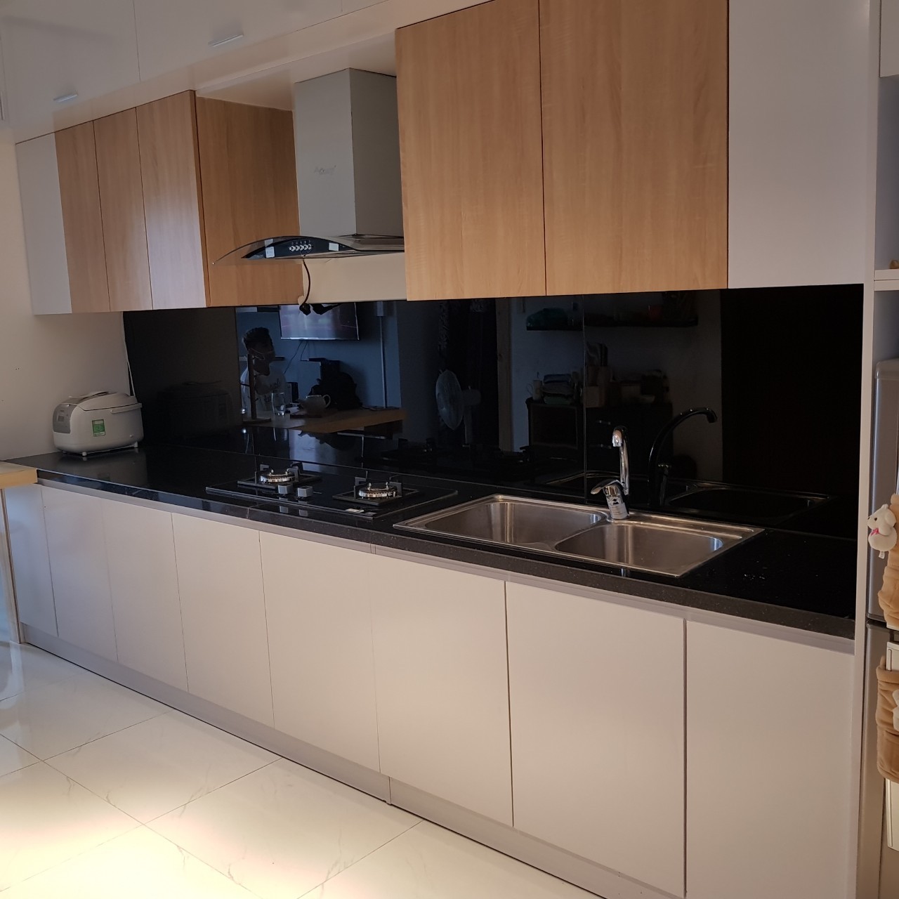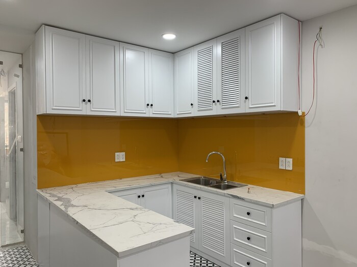 - Khổ cao của kính được tính từ trên mặt đá tới đáy tủ trên hoặc tới chiều cao theo yêu cầu