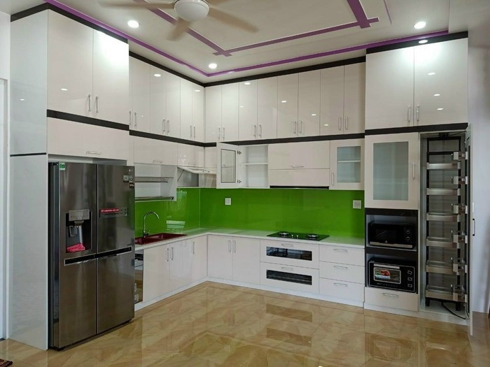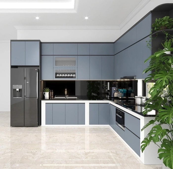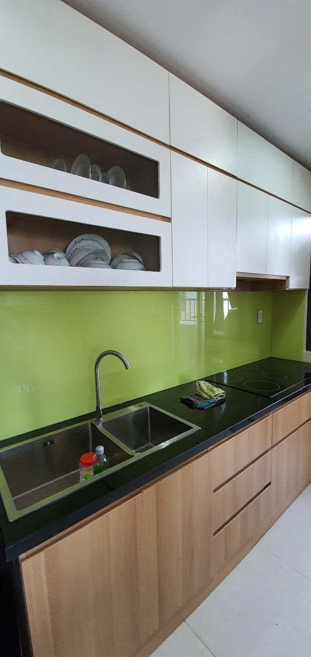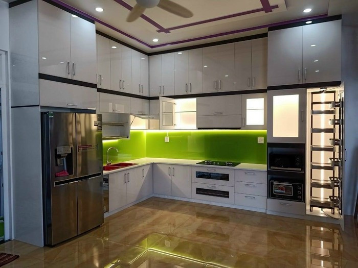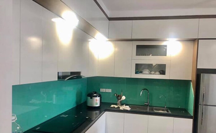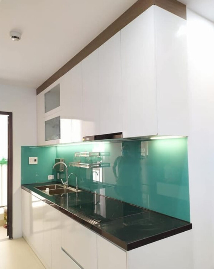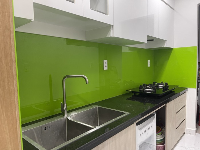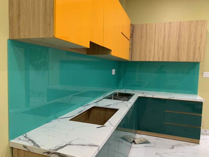 Mộc là cây cối, do đó kính bếp màu xanh lá hay kính ốp bếp màu xanh lơ sẽ là sự lựa chọn hoàn hảo dành cho bạn. Tuy nhiên màu xanh này khi kết hợp với nội thất tối màu thường tạo cảm giác khá bó hẹp. Do đó, nếu không gian phòng bếp nhỏ, bạn không nên sử dụng nội thất phòng bếp là màu nâu, đen, màu vân gỗ. Thay vào đó, bạn nên sử dụng các nội thất màu sáng như trắng, kem sữa.