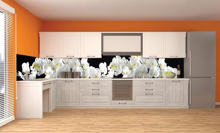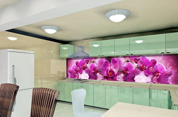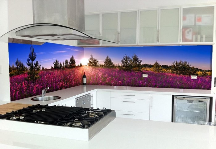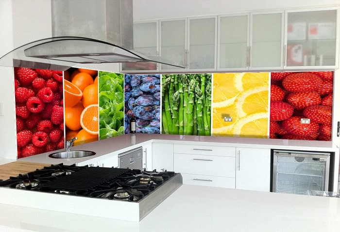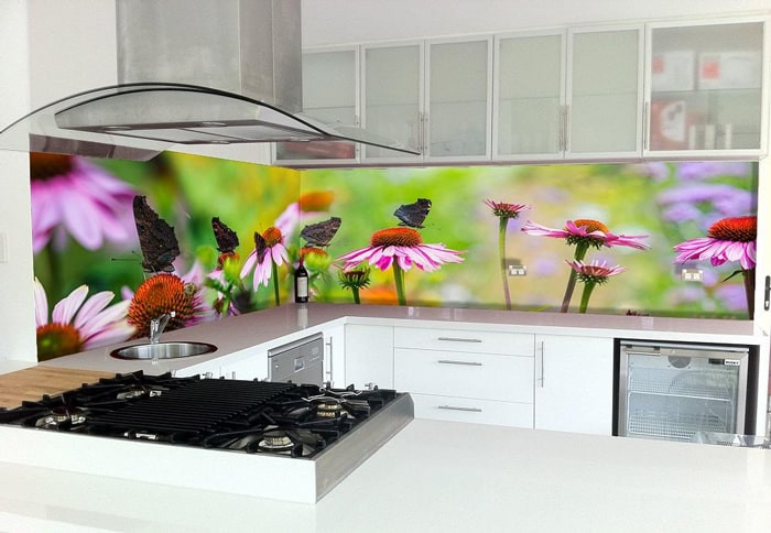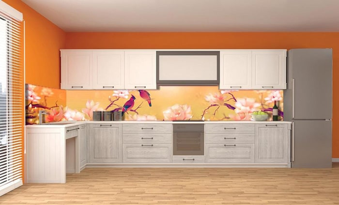 Quý khách có thể kính hoa văn ốp bếp theo ý thích của mình cũng nên chọn kính hoa văn ốp bếp theo màu phong thủy kính bếp.