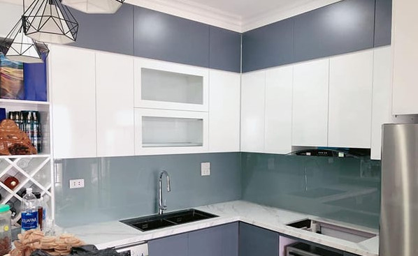 Nếu bạn là người mệnh thủy, hãy ưu tiên chọn kính ốp bếp màu xanh cho căn bếp của bạn. Màu xanh ở đây nên là xanh dương. Vì xanh dương chính là biểu trưng cho nước – Thủy. Tuy nhiên muốn kết hợp với màu này đạt tính thẩm mỹ cao, bạn nên chọn nội thất tủ bếp là màu trắng nhé.