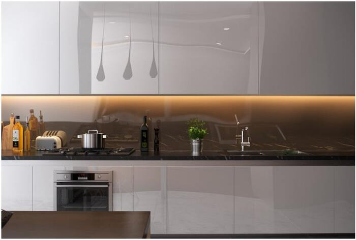 Tuy nhiên, nếu bạn nhàm chán với màu này, bạn cũng có thể chọn kính ốp bếp màu kem sữa. Sự khác biệt giữa 2 màu này là không lớn, tuy nhiên, màu sữa ngoài mang lại sự trang nhã, tinh tế như màu trắng, nó còn thể hiện thêm 1 phần ấm cúng và ngọt ngào.